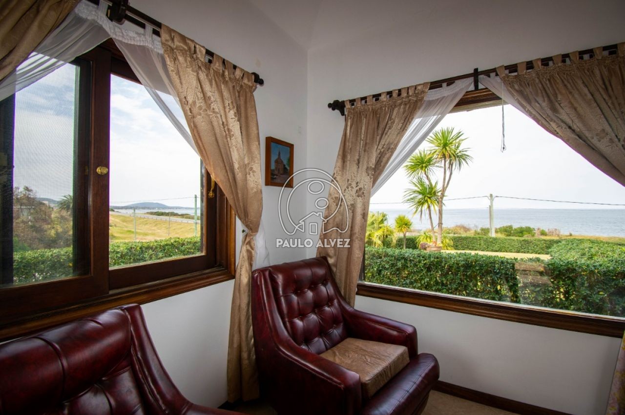 Espectacular propiedad de alto porte, frente al mar, emplazada sobre dos padrones. Ubicada en balneario Bella Vista sobre Ruta 10, una de las más importantes de la zona. Rodeado de excelentes propiedades, en un entorno natural y sereno, perfecto para disfrutar de las puestas de sol más lindas. A solo quince minutos del centro de Piriápolis y a una hora de Montevideo. Emplazada sobre un gran pedio de 2872 m², totalmente cercada. Construcción tradicional de 340 m² con doble pared de ladrillo a la vista con cámara de aire, techo de losa, aberturas en madera de gran calidad, pisos de cerámica con losa radiante. Casa principal: distribuida en dos plantas. Planta baja, amplio y luminoso living comedor con hermosas vistas a la playa, cocina semi definida con muebles bajo mesada y aéreos, baño completo, dos cómodos dormitorios. Planta alta, cuenta con una master suite, vestidor, baño en suite y acceso a la terraza. Apartamento independdiente: dos dormitorios y baño completo. En el exterior, barbacoa de gran tamaño con parrillero, horno a leña un dormitorio y baño completo y garage para dos vehículos. Al fondo, casa para húespedes o caseros. Ideal para llevar adelante su proyecto de vida. Consulte para coordinar una visita.
